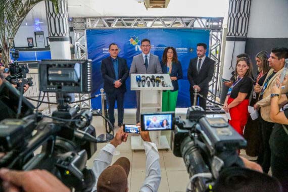 Na abertura da solenidade, o governador de Rondônia, Marcos Rocha participou de coletiva de imprensa e destacou que, o Fórum foi proposto pelo Governo de Rondônia com foco nos avanços no desenvolvimento do Estado e no bem-estar social, e que o evento, a cada edição, tem impulsionado o Estado a alcançar resultados exitosos, que beneficiam a população.