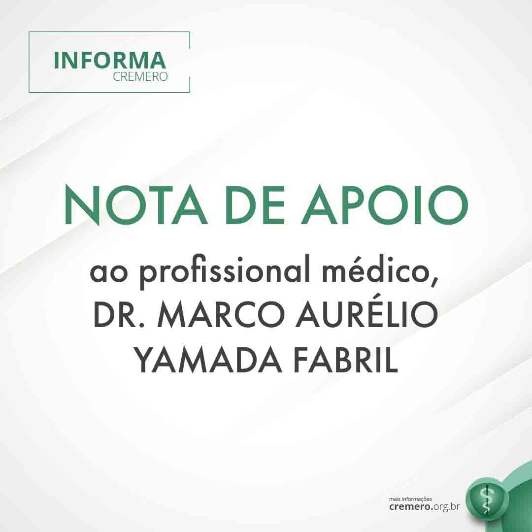 Nota de Apoio ao profissional médico, Dr. Marco Aurelio Yamada Fabril