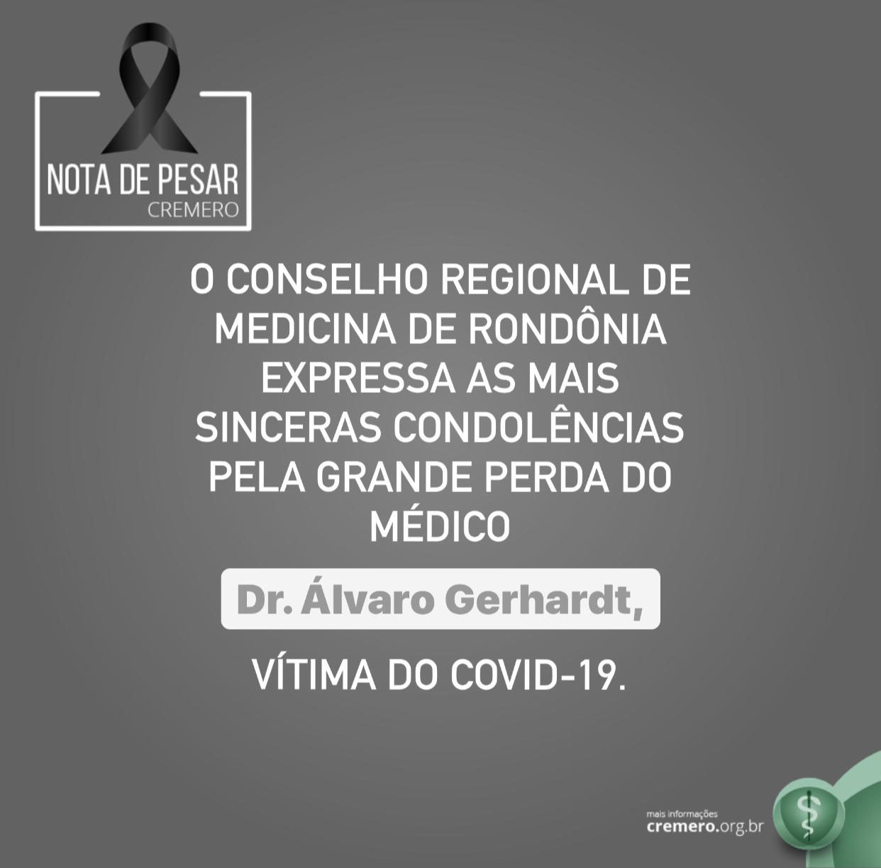 O Conselho Regional de Medicina de Rondônia expressa as mais sinceras condolências pela grande perda do médico Dr. Álvaro Gerhardt, vítima do Covid-19