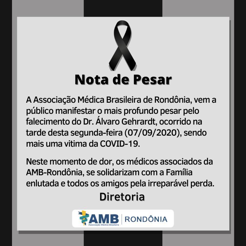 Nesse momento de dor os médicos da AMB-Rondônia se solidarizam com a família enlutada