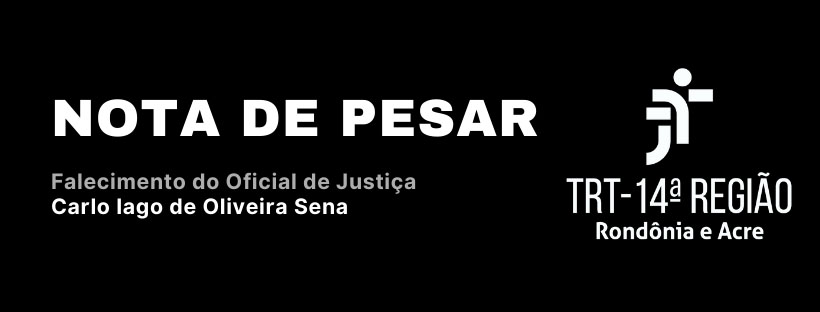 Com profundo pesar, o Tribunal Regional do Trabalho da 14ª Região comunica o falecimento do Analista Judiciário - Oficial de Justiça Avaliador Federal, Carlo Iago de Oliveira Sena (40), ocorrido na manhã de quinta-feira (06), em Ji-Paraná/RO, vítima de infarto fulminante.