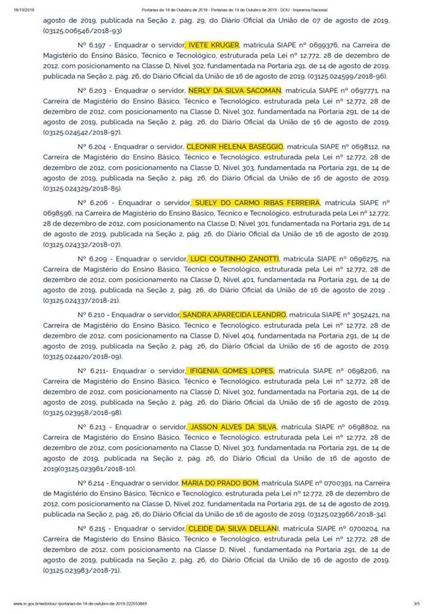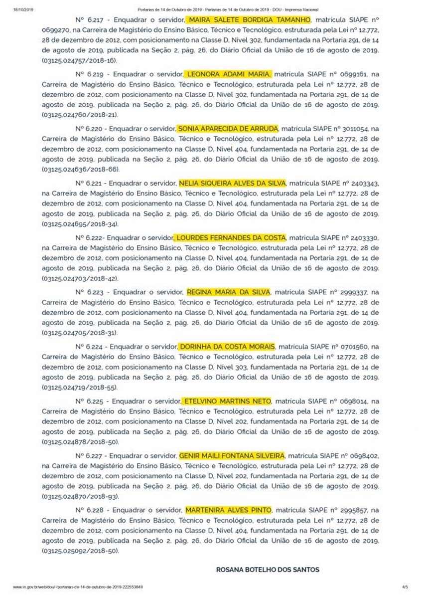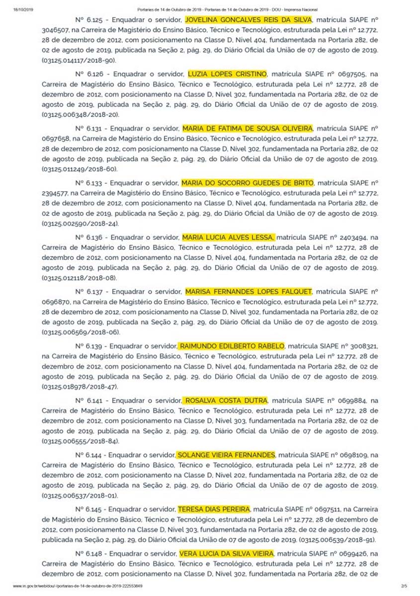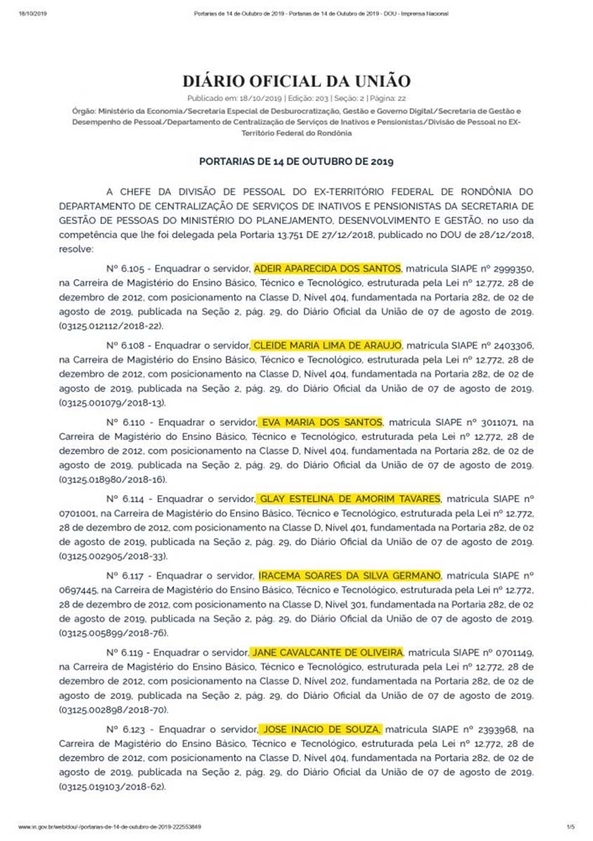 O Diário Oficial da União divulgou nova Portaria, nesta sexta-feira (18/10), enquadrando mais 38 professores de Rondônia na Carreira de Magistério do Ensino Básico Técnico e Tecnológico (EBTT).