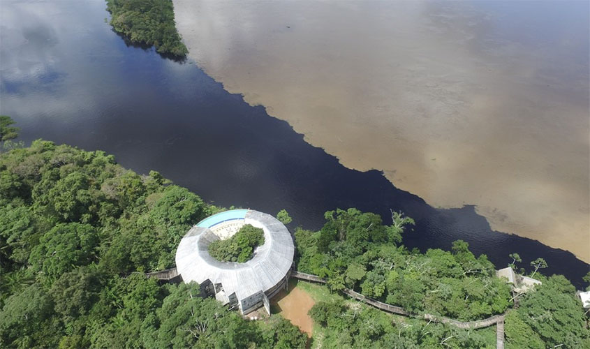 FOTO DO DIA: A beleza do encontro das águas que não se misturam, como no similar maior no Amazonas, também acontece no município de Guajará-Mirim, atraindo turistas brasileiros e do exterior, quando os rios Mamoré (escuro), que separa o Brasil da Bolívia, se encontra com o Pacaás Novos com suas águas mais claras, valorizando ainda mais o hotel de selva Pakaás de onde se tem uma vista exuberante do