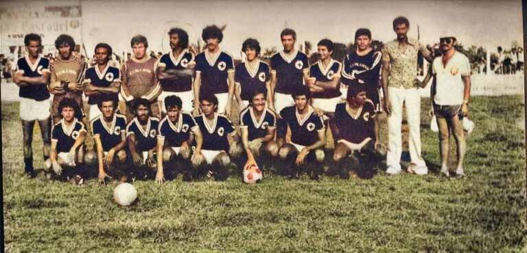 FOTO DO DIA: Nos tempos antes da criação do Estado, a grande rivalidade no futebol no eixo da BR-364 era um jogo Vila Nova x Vera Cruz. O Vila representava o 2º distrito, também conhecido à época a como “Vila Jotão”, e sua sede ficava na Rua dos Seringueiros, nº 633, no bairro de Nova Brasília. O Vila chamado “Alvinegro Ji-paranaense” foi fundado dia 07 de Setembro de 1972, por um grupo de desportistas, à frente os srs. Jurandir, Brasil, Loro e o futuro prefeito Roberto Jotão Geraldo. Nos anos 90, chegou a disputar o Campeonato Rondoniense da 1ª Divisão, em 1994, 1995 e 1997 (). Um das formações do Vila na década de 1980: EM PÉ (esquerda para a direita): Nô, Wilson, Daniel, Jair Ramires, Boró, Teleco, Fábio, xxx, Cabo Chico, Alcântara, Roldão e José Brasil; AGACHADOS (esquerda para a direita): Deva, Hélio, Chicão, Joãozinho, Filho da Velha, Paulo, Renato e Caetano. () https://historiadofutebol.com/blog/?cat=48