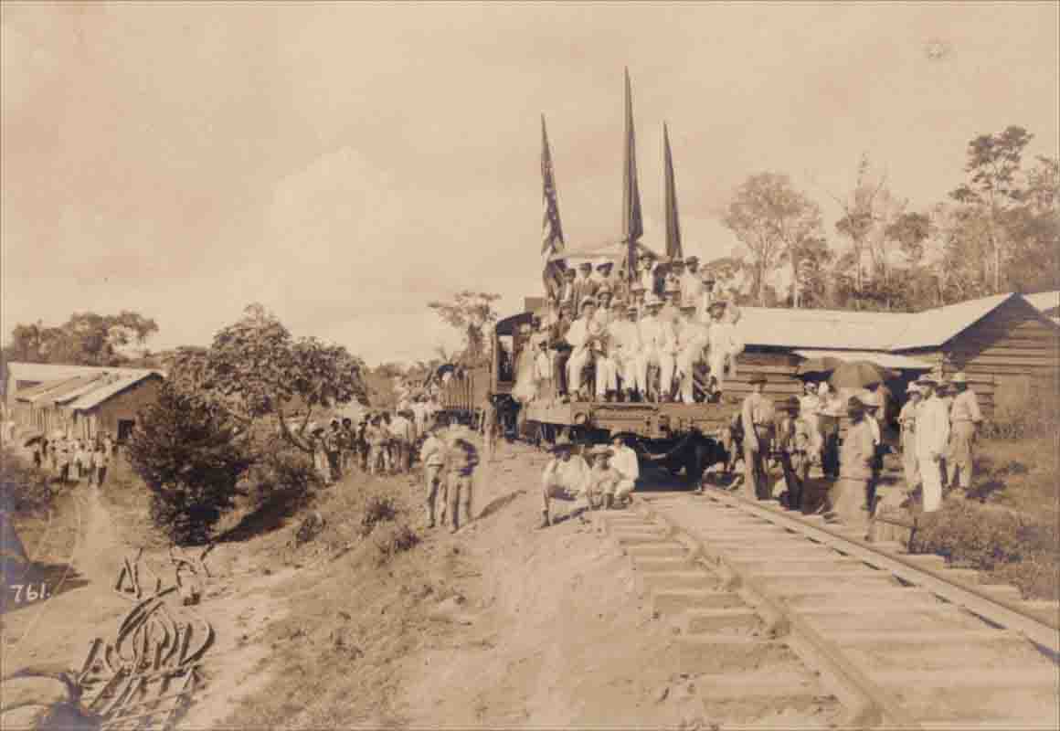 FOTO DO DIA: Seis anos depois do governo brasileiro ter assumido a administração da ferrovia Madeira-Mamoré, o presidente Getúlio Vargas assinou o Decreto-lei 1547/1937 que “Declara rescindido o contrato aprovado pelo decreto n.º 7.344, de 25 de fevereiro de 1909”, contrato entre o Governo Federal e a Madeira Mamoré Railway Cº. Ltd., em 1909, para a exploração da ferrovia. Pelo Decreto 1547/37, “A Madeira Mamoré Railvay Cº. Ltd. desiste de tôda e qualquer reclamação, por fatos ou atos praticados pelo Govêrno Federal em relação aos contratos de construção, arrendamento e outros, bem como da reclamação para se cobrar de prejuizos sofridos com o afundamento do pontão Guaporé”. E o “Govêrno Federal desiste de qualquer penalidade imposta à Madeira Mamoré Railway C" Ltd.”, relativas ao contrato”. OBS: Grafia da época; foto/Dana B. Merril. Inauguração do trecho PVh/S. Antônio.