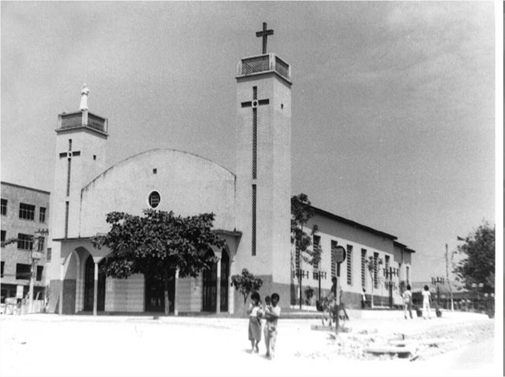 FOTO DO DIA : Durante mais de 50 anos qualquer pessoa que chegasse pela BR-364, vindo da parte sul de Rondônia à antiga Vila Rondônia, em 1977 Ji-Paraná, veria, muito antes de chegar à cabeceira da ponte que une os dois lados da rodovia, a torre da Catedral de São João Bosco, com a imagem do santo no alto do campanário. “A igreja foi construída pelos carpinteiros Pedro Serrador e Almir Laborda Izel. A estátua de Dom Bosco ficou em cima da torre da Igreja, como era o desejo do comerciante Raul Moreda (Espanhol), um trabalho incansável dos padres: Romano, Adolpho Rohl, Teodoro, Ângelo, Francisco Pucci (Chiquinho), Luiz, Fausto e Moisés” (*). Em 2017, com apoio do bispo Dom Bruno Pedron, o prédio foi derrubado em razão de estar com sua estrutura condenada” conforme o jornalista Roberto Gutierrez. A nova matriz começou a ser construída em 2017.