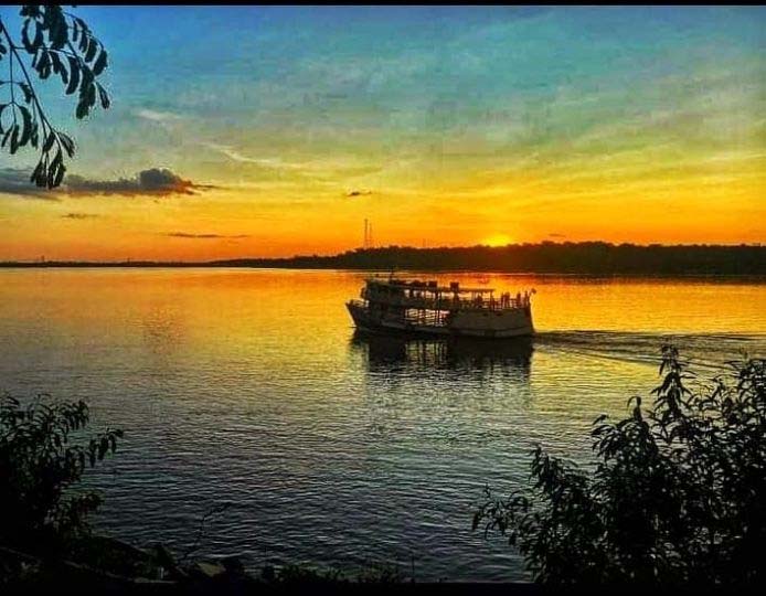 FOTO DO DIA: Uma visão fantástica da natureza: o belo pôr do sol com, em primeiro plano, a baía do Rio Madeira, em frente à cidade de Porto Velho. Um grande número de cores enche o céu e seus reflexos aparecem nas águas plácidas do Rio Madeira, o que Aumenta o espetáculo natural para os que vão assistir. Com a chegada do verão, um espetáculo diário, que junta muita gente no porto do Cai n’Água ou, como os passageiros do barco que aproveitam para dar uma volta, e apreciar de dentro d’água o “Até amanhã” do Sol. Para quem conhece os humores do nosso “verão amazônico”, sabe que quando “ele vai dormir” o dia seguinte será com o mesmo ou maior calor. No período o “dia desperta mais cedo” e às 6 a manhã o Sol já está alto.