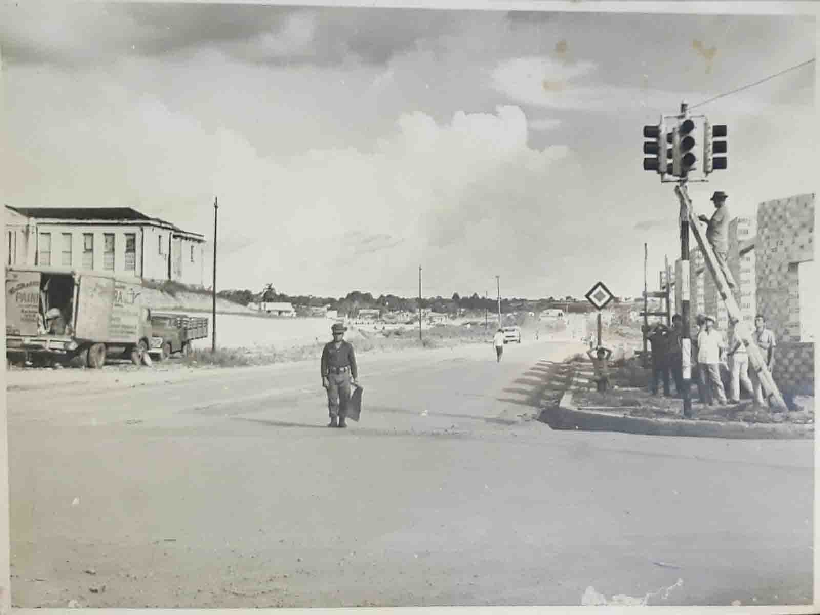 FOTO DO DIA: FIM DA DÉCADA DE 1960 – Porto Velho começa a se modernizar e o crescimento da população e do número de veículos, devido à abertura da BR-29 e ao garimpo de cassiterita, leva a que na esquina das avenidas Sete de Setembro com a Rogério Weber ssteja sendo colocada uma novidade e, como não pode faltar plateia nesses momentos, quase em baixo da escada usda pelo eletricista, um grupo de moradores observa os trabalhadores que instalam o primeiro sistema eletrônico de controle de tráfego, o semáforo. De qualquer forma, totalmente indiferente à modernidade que estava sendo implantada, um morador atravessa, talvez como fazia há muitos anos, em diagonal, sem se preocupar com o que estava sendo colocado, enquanto à esquerda, o prédio do Fórum Ruy Barbosa era uma testemunha silenciosa dos acontecimentos.