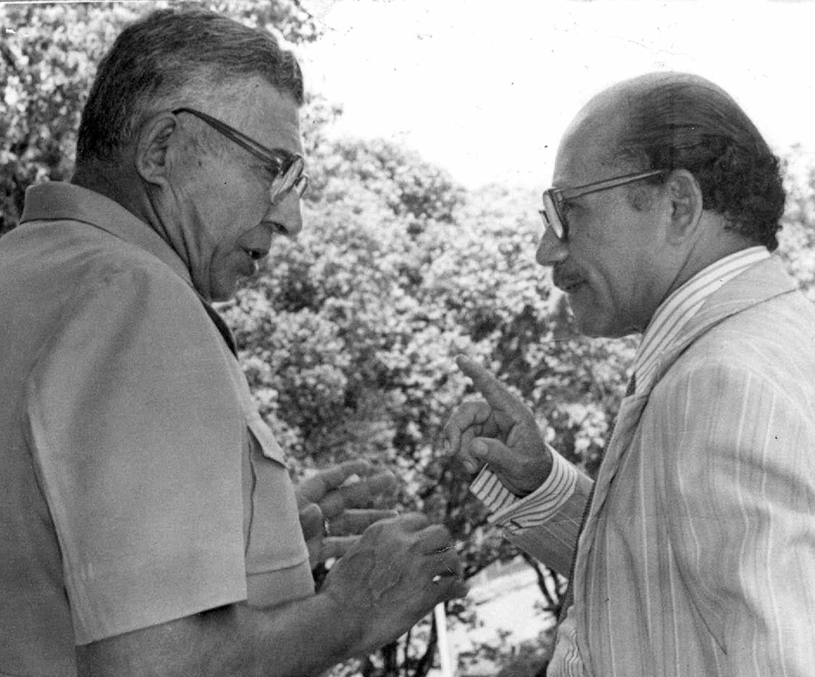 FOTO DO DIA: Uma conversa onde o tema era, nem é preciso imaginar outra coisa: Rondônia, ainda mais que fazia poucos meses que o Território deixara de existir e o Estado foi instalado. De um lado, com seu traje preferido, o “safari”, o governador Jorge Teixeira e de outro o jornalista Euro Tourinho, dois amazônidas, Teixeira nascido no Rio Grande do Sul e Euro em Dourados, MS, mas ambos de grandes serviços prestados a Rondônia. O governador foi antes comandante do Cigs, implantador do Colégio Militar de Manaus, cidade da qual foi prefeito, e governador de Rondônia, faleceu aos 65 anos, em 1987, menos de dois anos depois de deixar o Estado. Euro, jornalista, durante mais de 50 anos foi diretor do jornal Alto Madeira, faleceu aos 96 anos. (F. Rosinaldo Machado).
