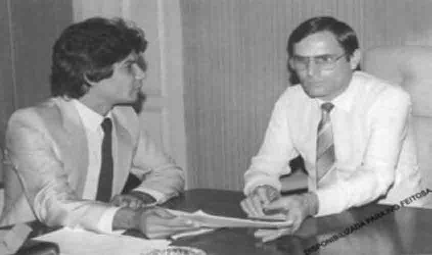 FOTO DO DIA: O professor Angelo Angelin (de branco) chegou a Rondônia na metade dos anos 1970. Com amigos decidiram viajar pela rodovia BR-364 mas o dinheiro acabou e ele parou em Vilhena, onde depois se radicou sendo professor tanto nesta cidade quanto em Colorado do Oeste. Candidato a deputado estadual pelo PMDB, Angelin foi o último dos 24 eleitos para escrever a primeira Constituição estadual em 1983, sendo eleito 2º secretário da Mesa Diretora da Assembleia. Em 1985, quando da saída do governador Jorge Teixeira, Angelin foi “bancado” pelo ex-deputado federal Jerônimo Santana e tornou-se governador do Estado (10 de maio de 1985 - 15 de março de 1987). Em 1990 tentou e não conseguiu ser eleito senador, e sentindo-se abandonado retirou-se da vida política. Faleceu em 2017.