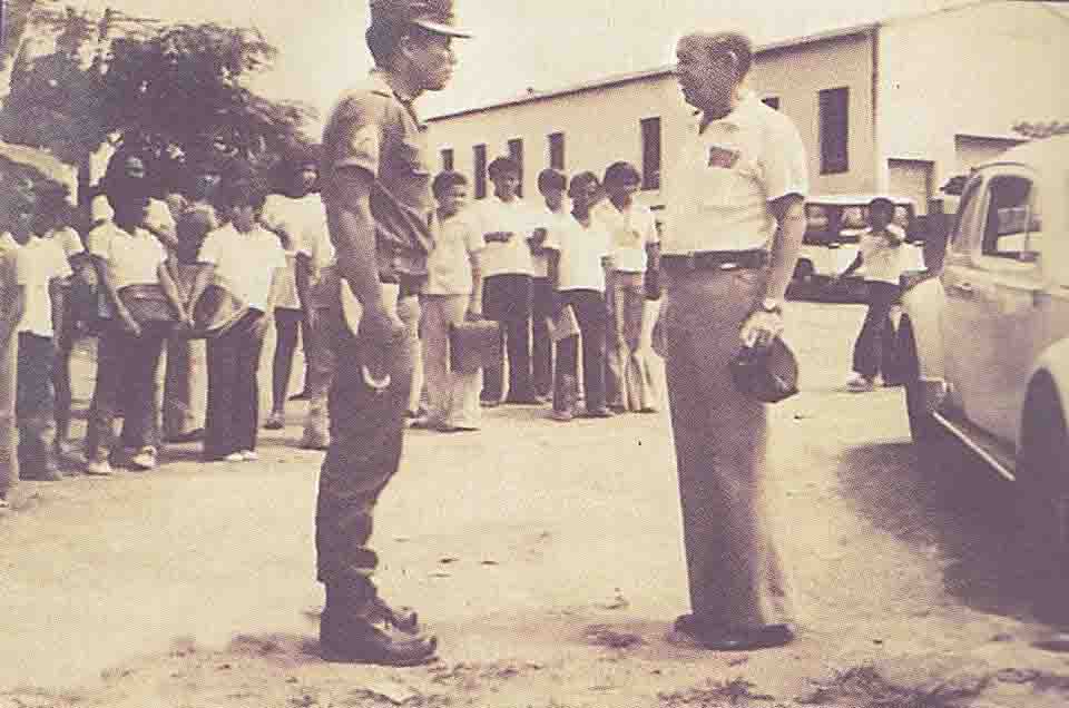 FOTO DO DIA: 1974 - O coronel Marques Henriques, antepenúltimo governador do Território, em 1981 instituído Estado de Rondônia, é recebido em Vila Rondônia pelo comandante local da Guarda Territorial, Sargento Sampaio, que como outros graduados atuavam nas pequenas comunidades também como delegados, época em que inexistiam juiz nem promotor público presentes. Criada em 1944 pelo primeiro governador Aluízio Ferreira, a “Guarda” teve papel muito importante na luta contra o crime e na realização de obras durante o período do Território, uma história que precisa ser melhor contada. Seus membros eram uma espécie de “faz tudo”, incluindo a segurança pública, mas também carpinteiros, pedreiros, lenhadores. A Guarda foi extinta em 1975 pelo Decreto Nº 864 (9.9.1977), assinado pelo governador Humberto Guedes, substituída em novembro daquele ano pela Polícia Militar.