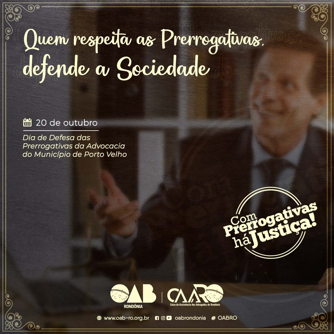 Para marcar a data e levar informações sobre o tema à advocacia e sociedade, a OAB Rondônia inicia no dia 20 de outubro a campanha “Com prerrogativas há justiça! – Violar as prerrogativas agora é crime”.