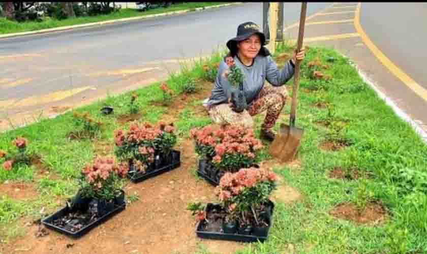 Prefeitura repõe flores furtadas que foram plantadas recentemente em rotatórias