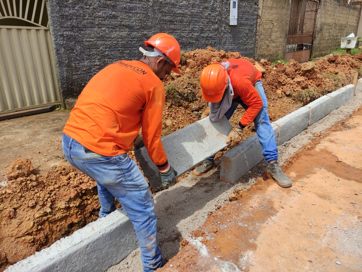 Os serviços de meio-fio, sarjeta e calçada estão sendo feitos gradativamente