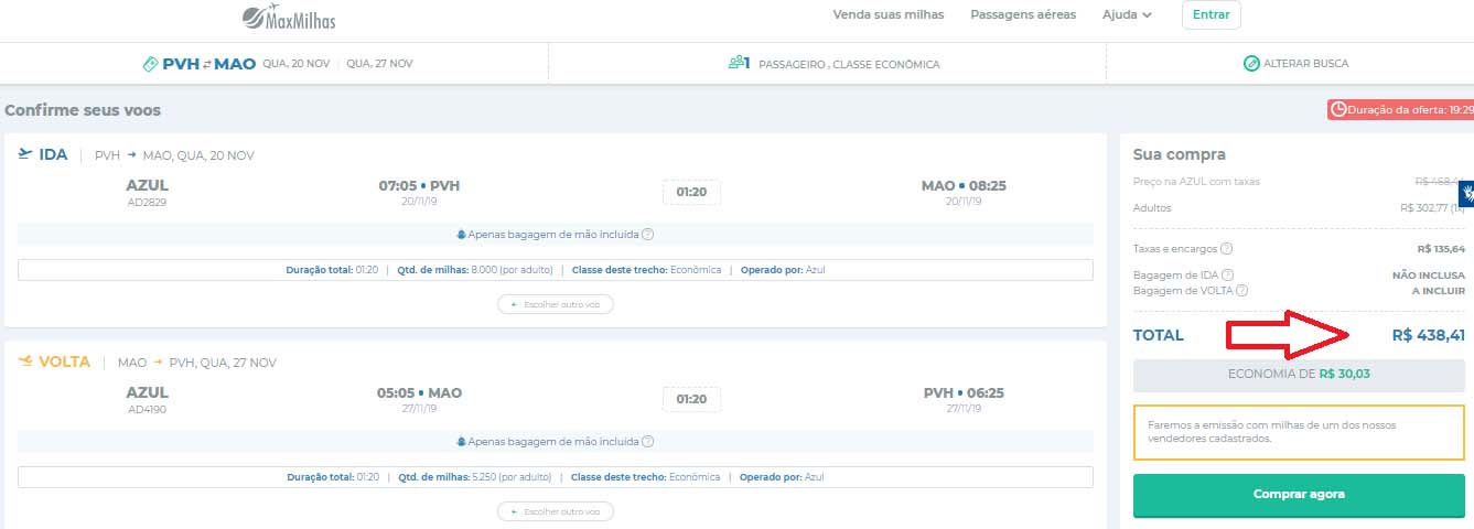 Passagens aéreas em 12 vezes para embarque em Porto Velho; bilhetes de ida e volta a partir de R$ 438