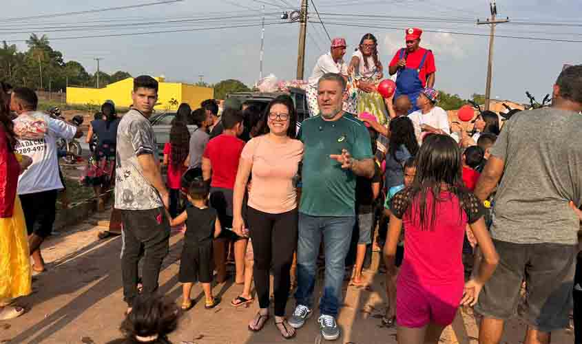 Vereador Fogaça e esposa Fernanda participam de festa das crianças do líder comunitário Mazinho no bairro Teixeirão