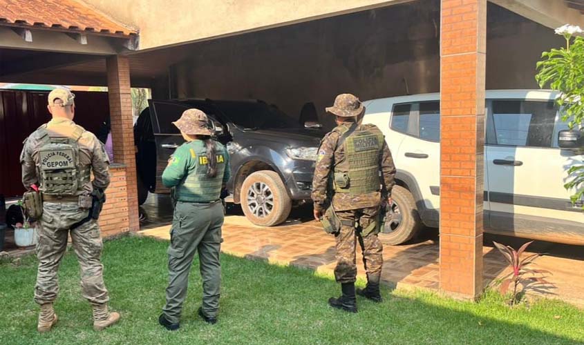 As equipes cumpriram mandados de busca e apreensão em seis endereços de Nova Mamoré/RO, com o apoio de profissionais do Ibama. Foram apreendidos celulares, rádios amadores e 26 cheques, com valor aproximado de R$ 640 mil.