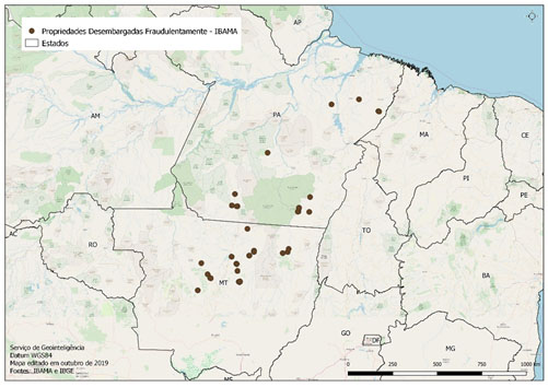 Figura: propriedades beneficiadas por meio de fraude com uso de tokens falsificados