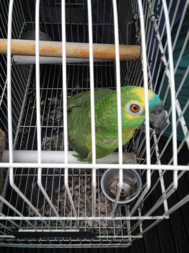 Papagaio encontrado em cativeiro no Rio de Janeiro - Divulgação/Delegacia de Proteção ao Meio Ambiente da Polícia Civil do Rio de Janeiro
