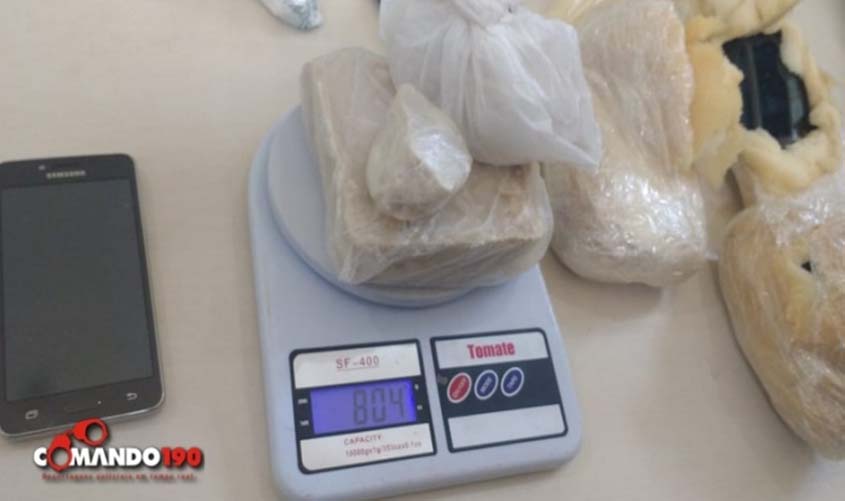 De imediato, as Guarnições de Rádio Patrulha, se deslocaram até nas imediações da Rua T-30, no bairro Jorge Teixeira, e localizou a residência suspeita. Com a permissão da proprietária da casa, os PM’s fizeram uma busca e acabaram encontrando mais de 01 quilo de pasta base, balança digital e vários celulares, já embalados e prontos para serem lançados para dentro de algum presídio.