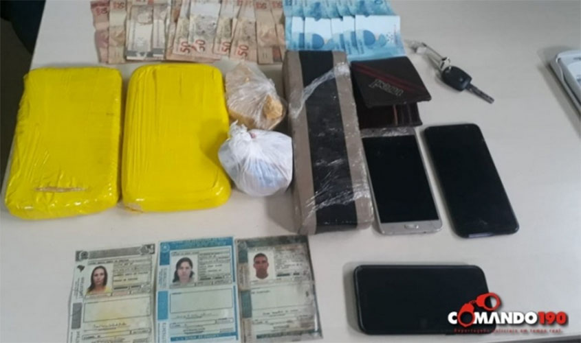 Na tarde deste domingo, dia 07, uma Guarnição da Polícia Militar realizava patrulhamento pela Avenida Transcontinental, quando, ao se aproximar da rotatória do Anel Viário, avistou um veículo Gol, de placas JXV-1L44, de Vilhena/RO, trafegando pela contramão de direção. Foi feito a abordagem e durante uma busca minuciosa, os militares acabaram encontrando 3 quilos de Pasta Base e uma certa quantia em dinheiro.