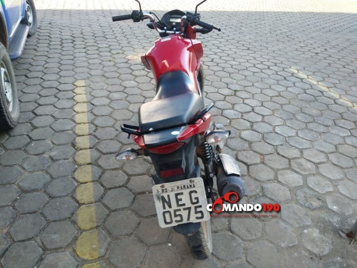 Durante um patrulhamento de rotina pelo Bairro Val Paraíso, 2º Distrito de Ji-Paraná, na manhã deste domingo, dia 04, uma Guarnição de Rádio Patrulha se deparou com um indivíduo conduzindo uma moto furtada. Ao perceber a aproximação da viatura, o piloto acelerou o veículo e entrou em uma residência, no final da Rua T-12.