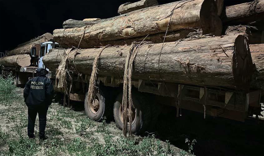 Polícia Federal apreende caminhões carregados de madeira retirada de terras indígenas em RO