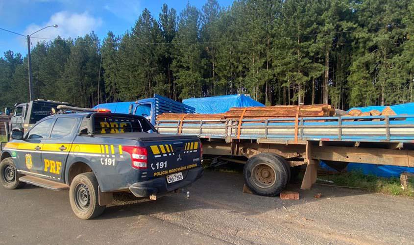 Em Vilhena/RO, PRF identifica transporte irregular de madeira
