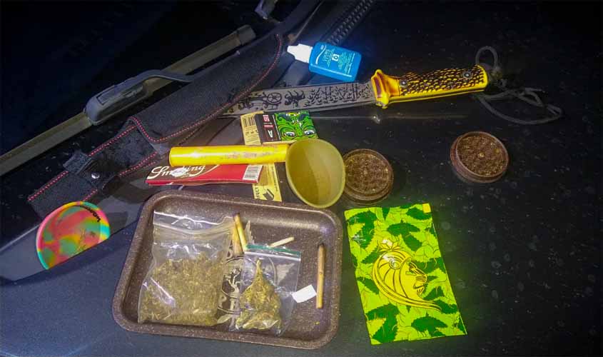 Mediante atitudes suspeitas de um condutor, foi realizada a abordagem e busca minuciosa no automóvel, em seguida os policiais militares encontraram substâncias entorpecentes e uma faca