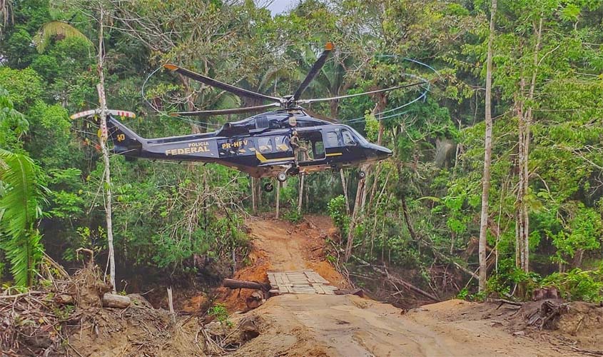 PORTO VELHO/RO – A Polícia Federal realizou no dia de ontem, 14/10/2022, ações ostensivas de fiscalização na Terra Indígena Karipuna, visando cumprir uma série de medidas determinadas pelo Supremo Tribunal Federal, no bojo da ADPF nº 709. A ação contou com apoio de explosivistas do Comando de Operações Táticas (COT) da PF e apoio aéreo do Comando de Aviação da PF (CAV) e do IBAMA.