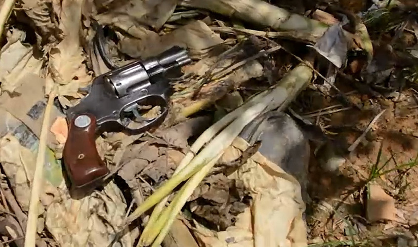 Com ele os policiais militares encontraram um revólver calibre 32 e na residência diversos aparelhos celulares e duas porções grandes de drogas