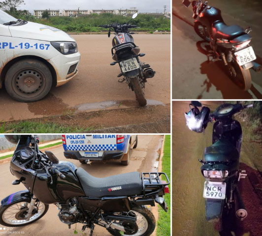 A Polícia Militar de Rondônia (PMRO), por meio dos trabalhos de equipes de radiopatrulha do 5º BPM, recuperou quatro motocicletas e recapturou dois foragidos na Zona Leste da Capital, durante os trabalhos do dia 07 de maio.