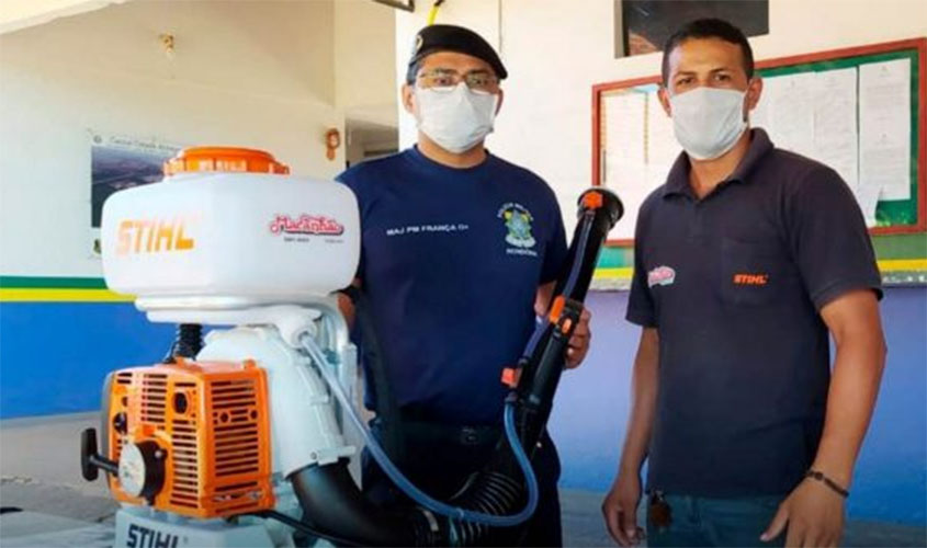 Empresa doou o pulverizador para ajudar a PM no combate ao coronavírus