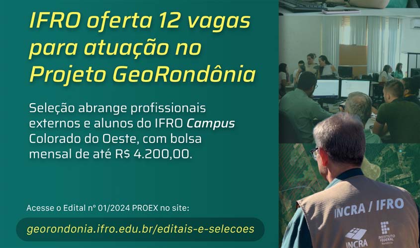 IFRO oferta 12 vagas para profissionais colaboradores no Projeto GeoRondônia
