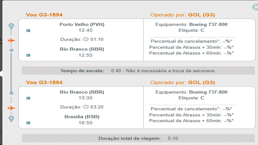 Os voos da Gol de Rondônia e do Acre para Brasília no mês de julho serão no formato circular. A mesma aeronave da companhia que decolar de Porto Velho fará uma parada em Rio Branco, antes de seguir para Brasília. No sentido inverso a aeronave da Gol sai de Brasília, segue para Porto Velho e continua a viagem para Rio Branco. (Veja na imagem acima).