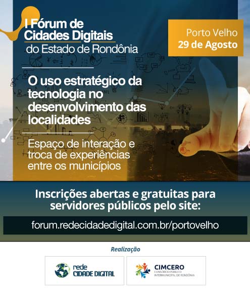O uso da tecnologia para promover melhorias na gestão pública e na vida da população será tema de encontro em Porto Velho, no dia 29 de agosto, quando será realizado na capital o I Fórum de Cidades Digitais do Estado de Rondônia, por meio de uma parceria entre a Rede Cidade Digital (RCD) e o Consórcio Público Intermunicipal de Rondônia (CIMCERO).