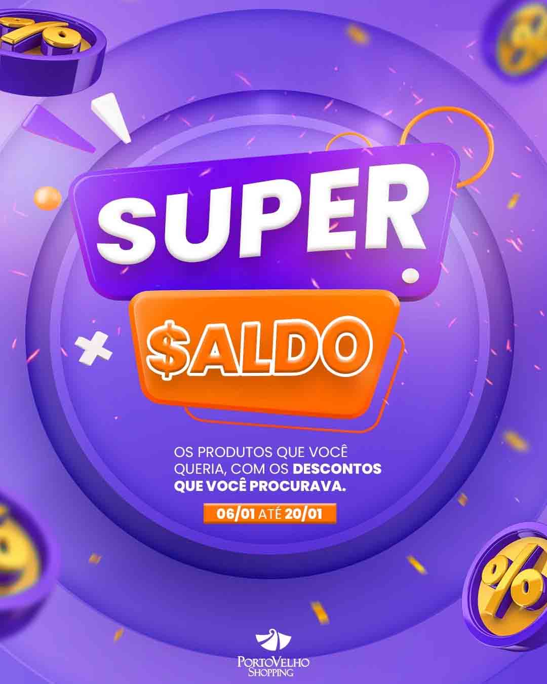 O ano começa com descontos no Porto Velho Shopping, que promove a tradicional campanha Super Saldo, de 6 a 20 de janeiro. Durante o período, as lojas oferecerão descontos em roupas, calçados, acessórios e artigos eletroeletrônicos, garantindo aos clientes as últimas oportunidades de aproveitar promoções exclusivas.