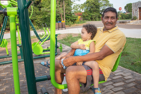 Morador do bairro Nova Esperança, o servidor público estadual João Bosco Rodrigues tirou a tarde de quinta-feira (13) para passear com o netinho de dois anos na praça. Ele disse que o espaço aqui ficou muito bom para as crianças interagirem umas com as outras, mas precisa ser cuidado por todos.