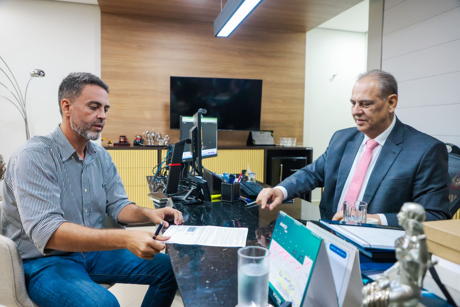 O prefeito de Porto Velho, Léo Moraes, esteve no Tribunal de Justiça de Rondônia (TJRO), na terça-feira (26), para uma reunião com o desembargador Raduan Miguel Filho, onde assinaram um Termo de Cooperação para a criação da "Praça da Justiça".