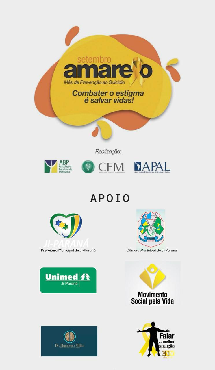 O mês de setembro é considerado pelo Conselho Federal de Medicina e Associação Nacional de Psiquiatria, o período de campanha de prevenção ao suicídio em todo o Brasil. A Prefeitura de Ji-Paraná, por meio das secretarias municipais de Saúde, Educação e Assistência Social (Semusa, Semed e Semas), está realizando várias atividades, com o objetivo de alertar a população sobre o aumento dos índices de suicídio e tentativas.