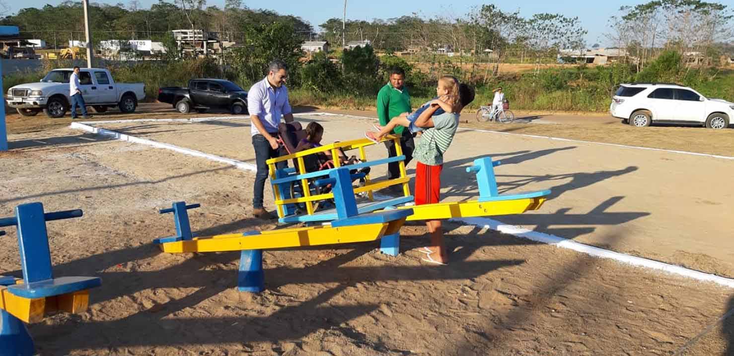 O residencial popular Zona Sul, em Ariquemes, foi a terceira comunidade beneficiada com brinquedos adaptados para crianças com deficiência. A entrega do kit, composto por balanço e gangorra, ocorreu na manhã da última sexta-feira (26) e contou com a presença do prefeito Thiago Flores, o qual na oportunidade afirmou que os locais escolhidos para receber os primeiros playgrounds inclusivos obedeceu ao critério lógico de demanda. “Nos norteamos por critérios e o primeiro deles é contemplar os locais onde existe maior demanda de crianças com necessidades especiais. Por este motivo, escolhemos os dois conjuntos habitacionais que existem no município, em que uma cota das vagas é destinada prioritariamente para famílias que possuem pessoas com deficiência, incluindo crianças.” Afirmou.