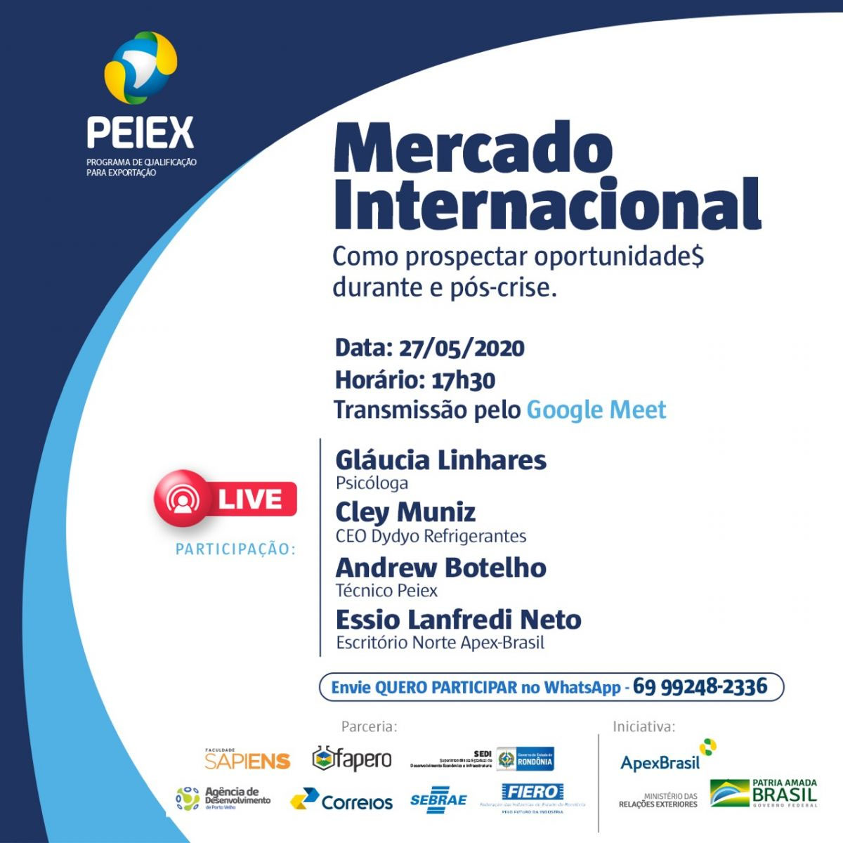 Com o objetivo de apoiar o empresário portovelhense a enfrentar a crise causada pelo novo coronavírus. O evento tem como tema “Mercado Internacional: como prospectar oportunidade$ durante e pós-crise” e será realizado por meio da plataforma Google Meet às 17h30 do dia 27 de maio.