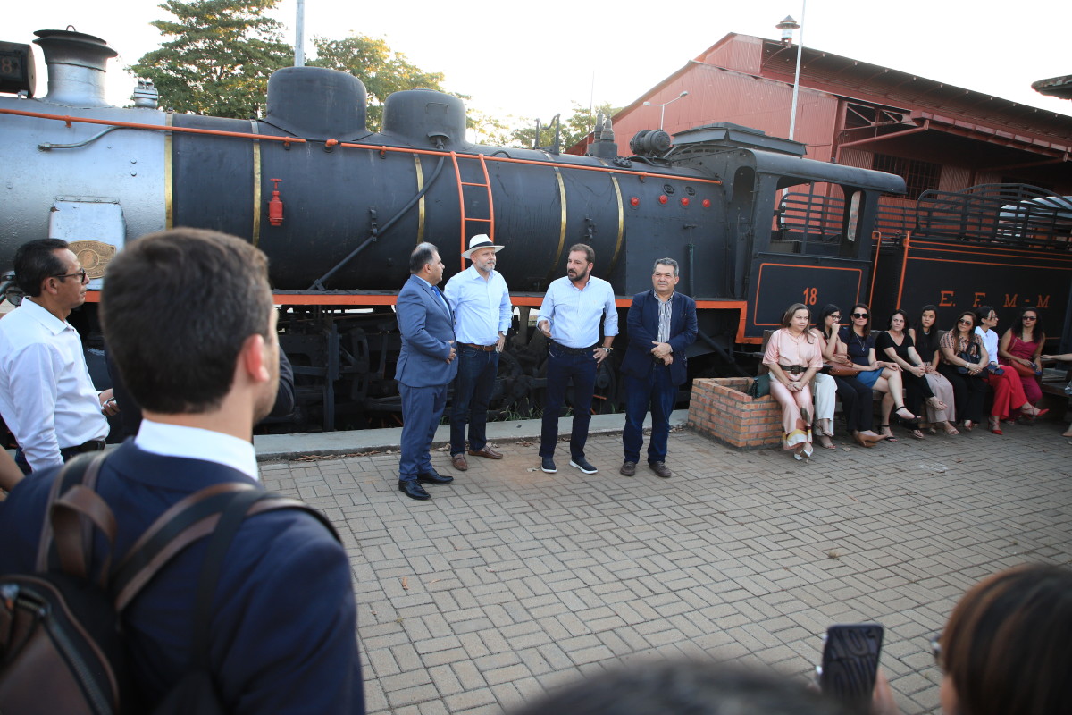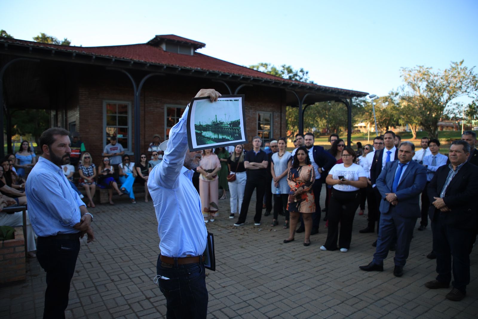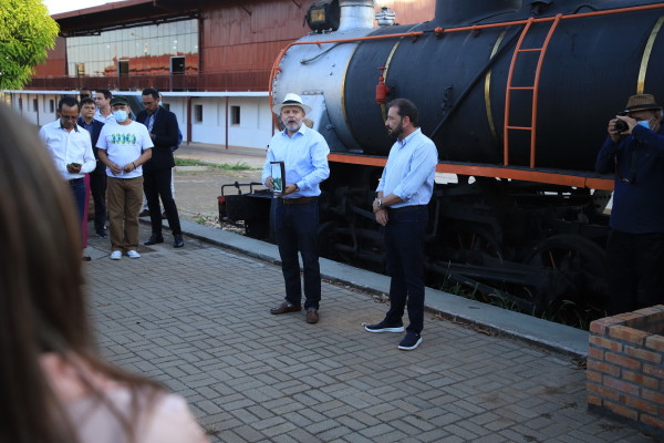 Na sequência, o prefeito levou os turistas para conhecer os antigos galpões, ocasião em que também falou sobre a obra de revitalização e peças históricas. “Os recursos de compensação para realizar esta obra estavam parados havia cerca de 10 anos e o complexo tomado pelo mato. Foi necessário um grande esforço por parte da Prefeitura e vários outros órgãos públicos e instituições para que a revitalização se tornasse uma realidade”, destacou Hildon Chaves ressaltando a grande importância do patrimônio histórico.