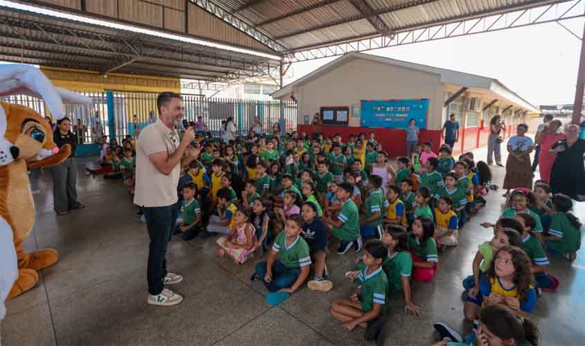 Prefeito Léo Moraes faz surpresa para alunos, sorteia bicicletas e entrega chocolates
