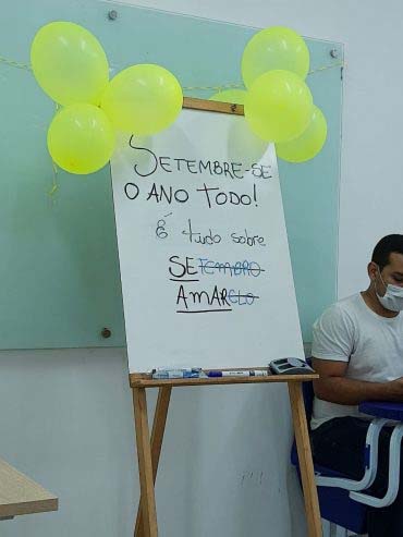 Para finalizar as ações em alusão ao Setembro Amarelo, foi realizado no último dia do mês de setembro (30), com os servidores do Cetas um momento lúdico, onde acadêmicos do curso de enfermagem realizaram dinâmicas, com o intuito de os participantes refletirem sobre a importância do diálogo e do auxílio profissional na resolução de conflitos internos e crises existenciais.