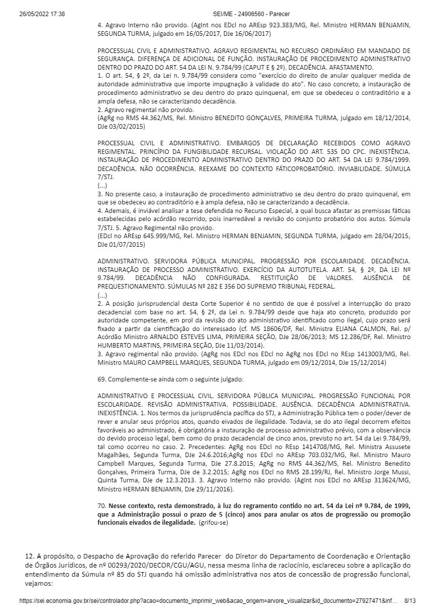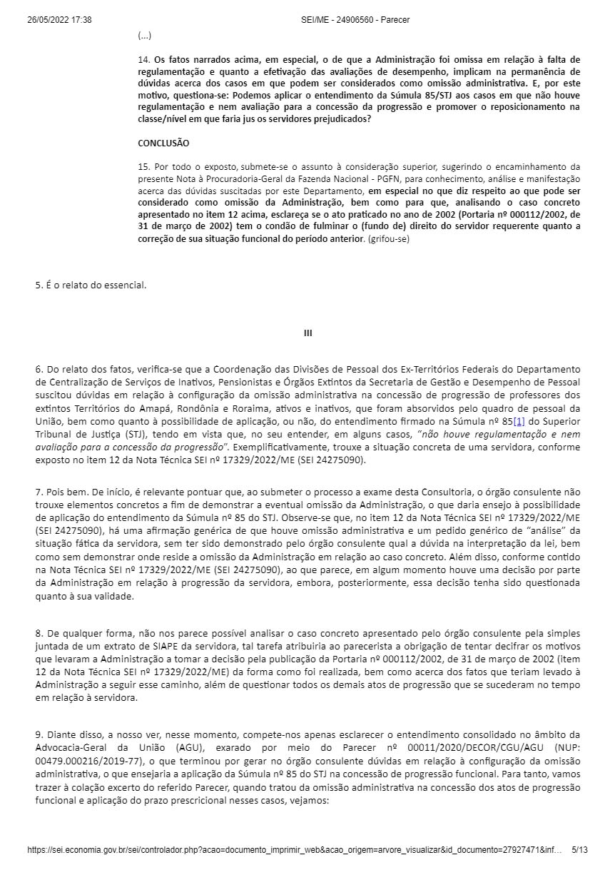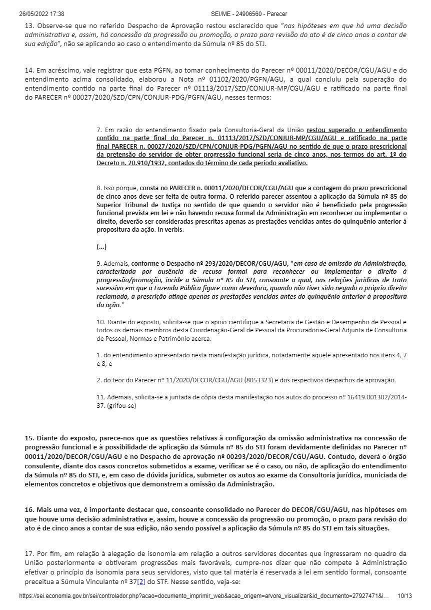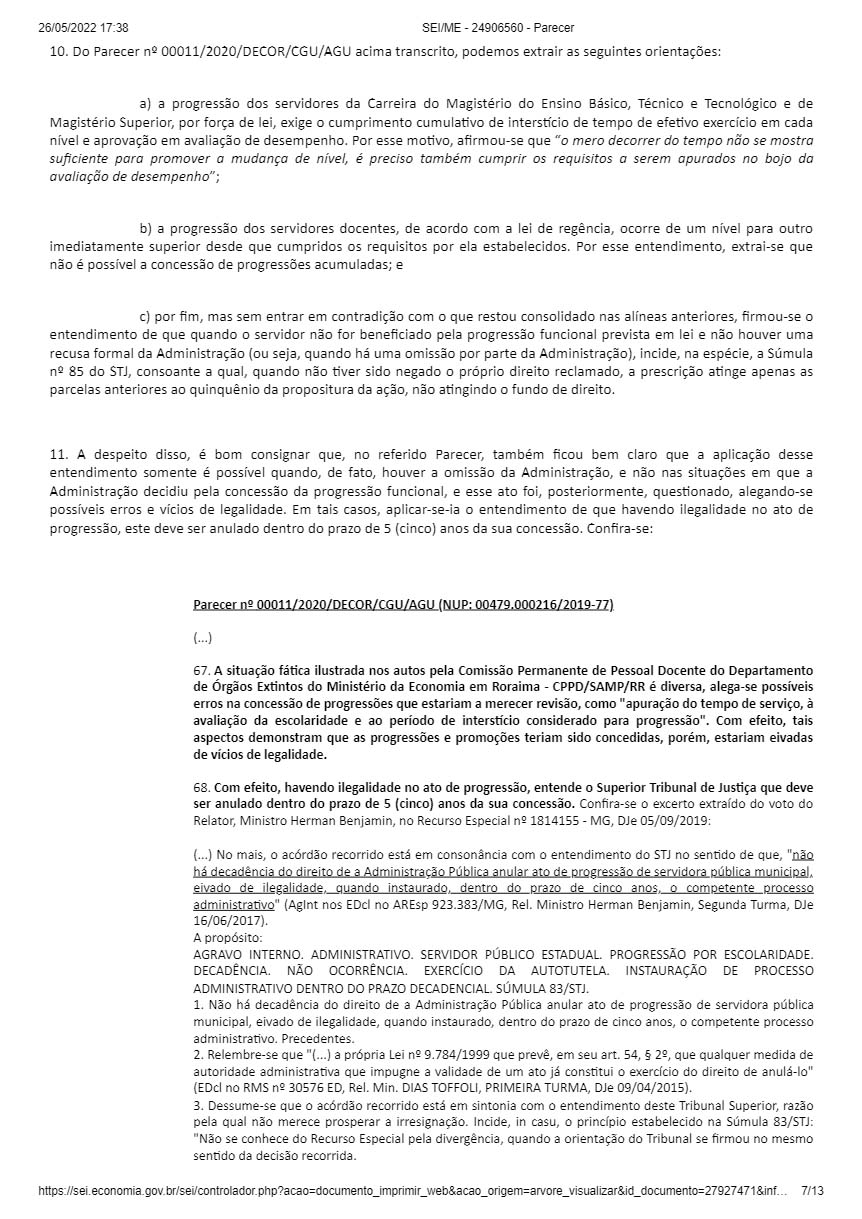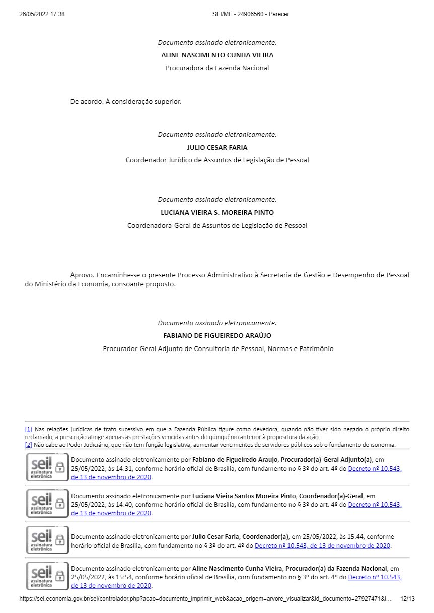 Entretanto, mesmo com a suposta mobilização anunciada pela Comissão representativa dos professores e técnicos do Ministério da Economia, o que se constatou de concreto foi uma decisão negativa proferida pela Procuradoria Jurídica, por meio do Parecer 7858/2022/ME, de 25 de maio de 2022, manifestação esta que a Comissão escondeu da categoria, de seus próprios colegas, por mais de três meses, o que gerou enorme decepção entre os professores de Rondônia, Amapá e Roraima.