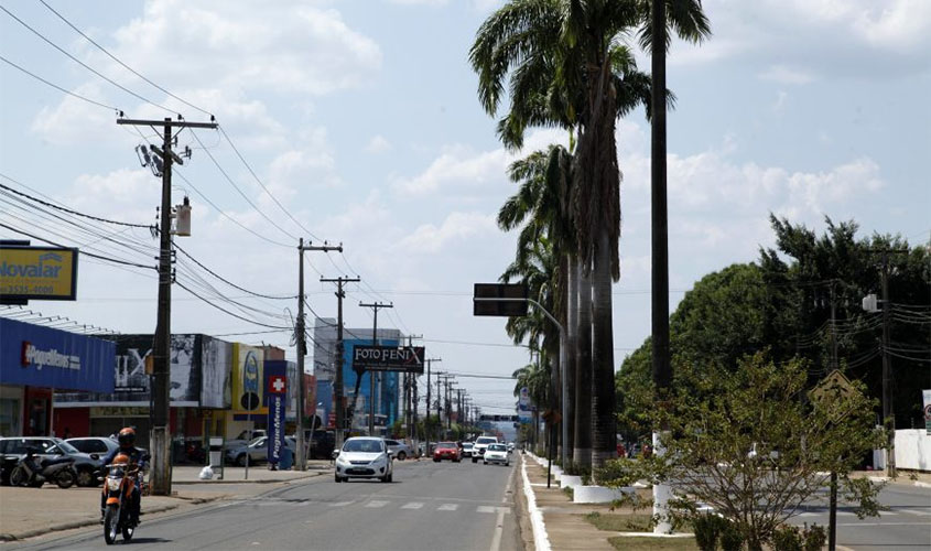 Palmeiras ornamentam o canteiro da Avenida Tancredo Neves cartão de visita de Ariquemes, hoje com 107 mil habitantes