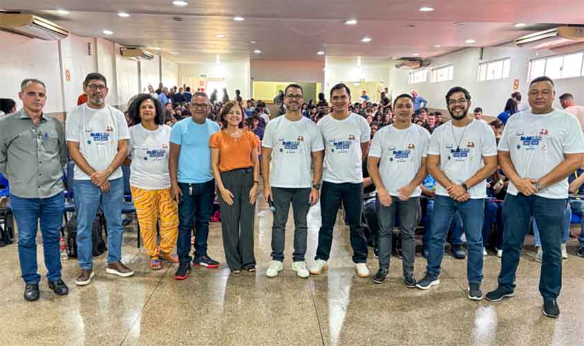 Professores do aulão e representantes da Elero e da Seduc (Rafael Oliveira I Secom ALE/RO)