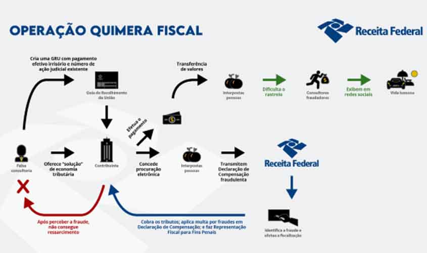 A Receita Federal, em conjunto com a Polícia Federal, deflagrou, na manhã desta quarta-feira (10/9), a Operação “Quimera Fiscal”. O objetivo é obter provas adicionais relativas à estrutura de consultoria que abusa do instituto da Declaração de Compensação e que continuou a perpetrar fraudes mesmo após ser alvo da Operação Ornitorrinco, em 13 de março de 2024. São investigados possíveis crimes de falsidade de documentos e de lavagem de dinheiro.