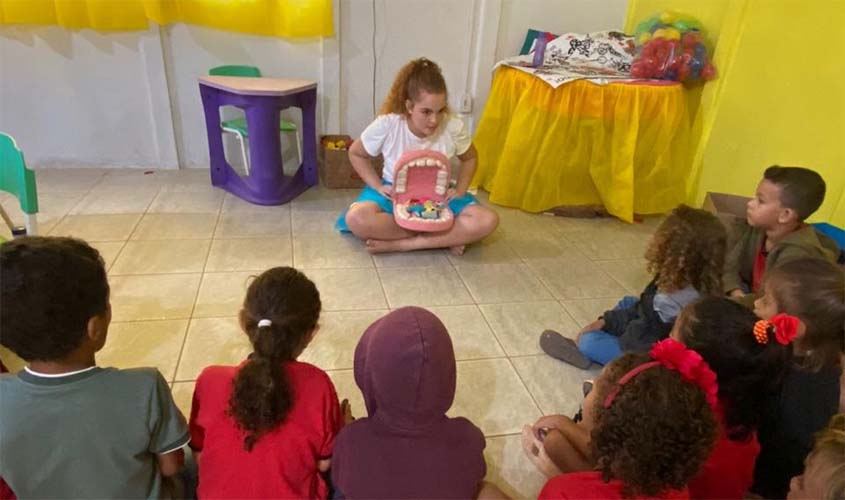 Por meio de atividades lúdicas, os estudantes ensinaram os pequenos sobre a escovação correta